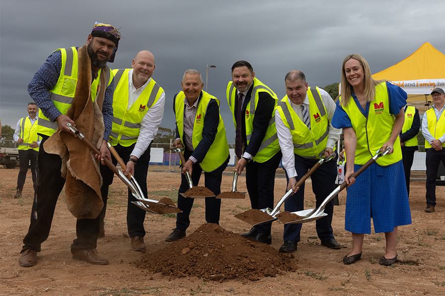 Representatives from WCH Foundation, Women’s and Children’s Health Network (WCHN), City of Playford, NAHLN, Flinders University, and the federal government attended the Breaking of the Sod ceremony to celebrate the start of this transformative project.