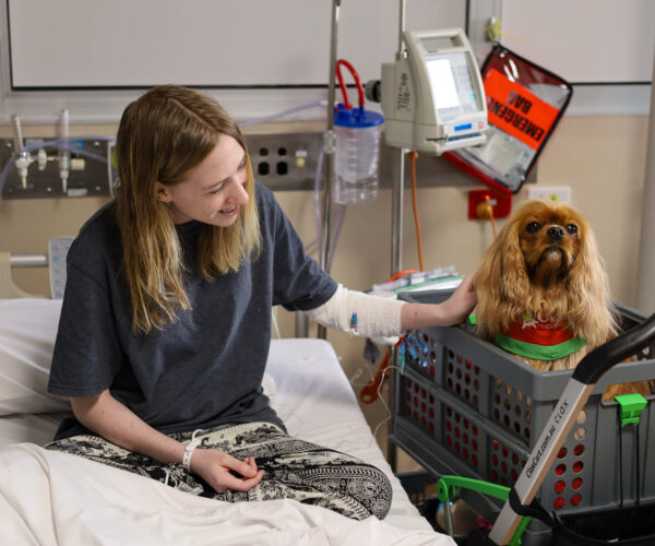 The Animal Assisted Therapy program was launched in the Hospital’s Paediatric Rehabilitation Department in 2016. The ‘Dog Team’ has become another ‘tool’ that the Department’s staff can access as part of the rehabilitation program for children receiving treatment at the Hospital. Read on to find out more information about our Animal Assisted Therapy program and how you can support this initiative.